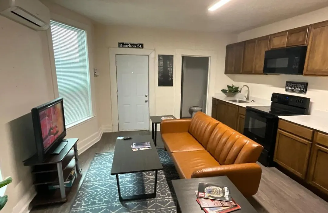 Dentro del Lovely Apartment In Bishop Arts hay una cocina bien equipada donde los huéspedes pueden preparar sus propias comidas caseras.